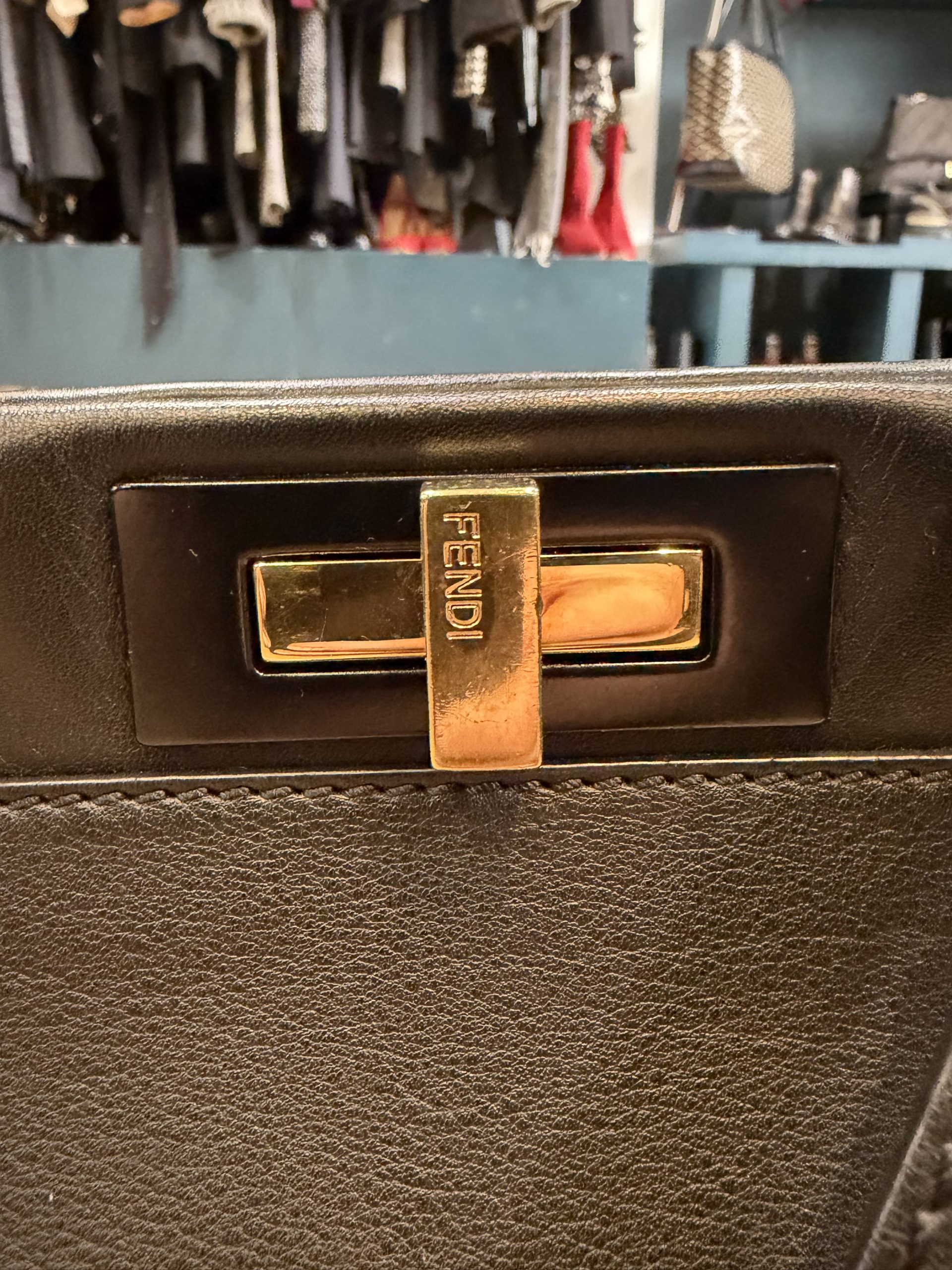 Sac modèle Peekaboo médium Cuir noir mat. Intérieur daim noir Dim 34x25x10 cm Très bon état Vendu avec son dust bag